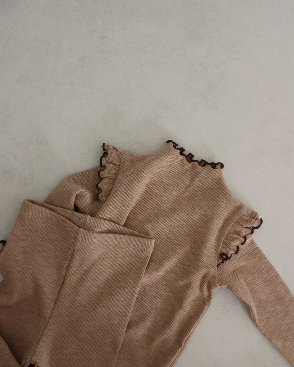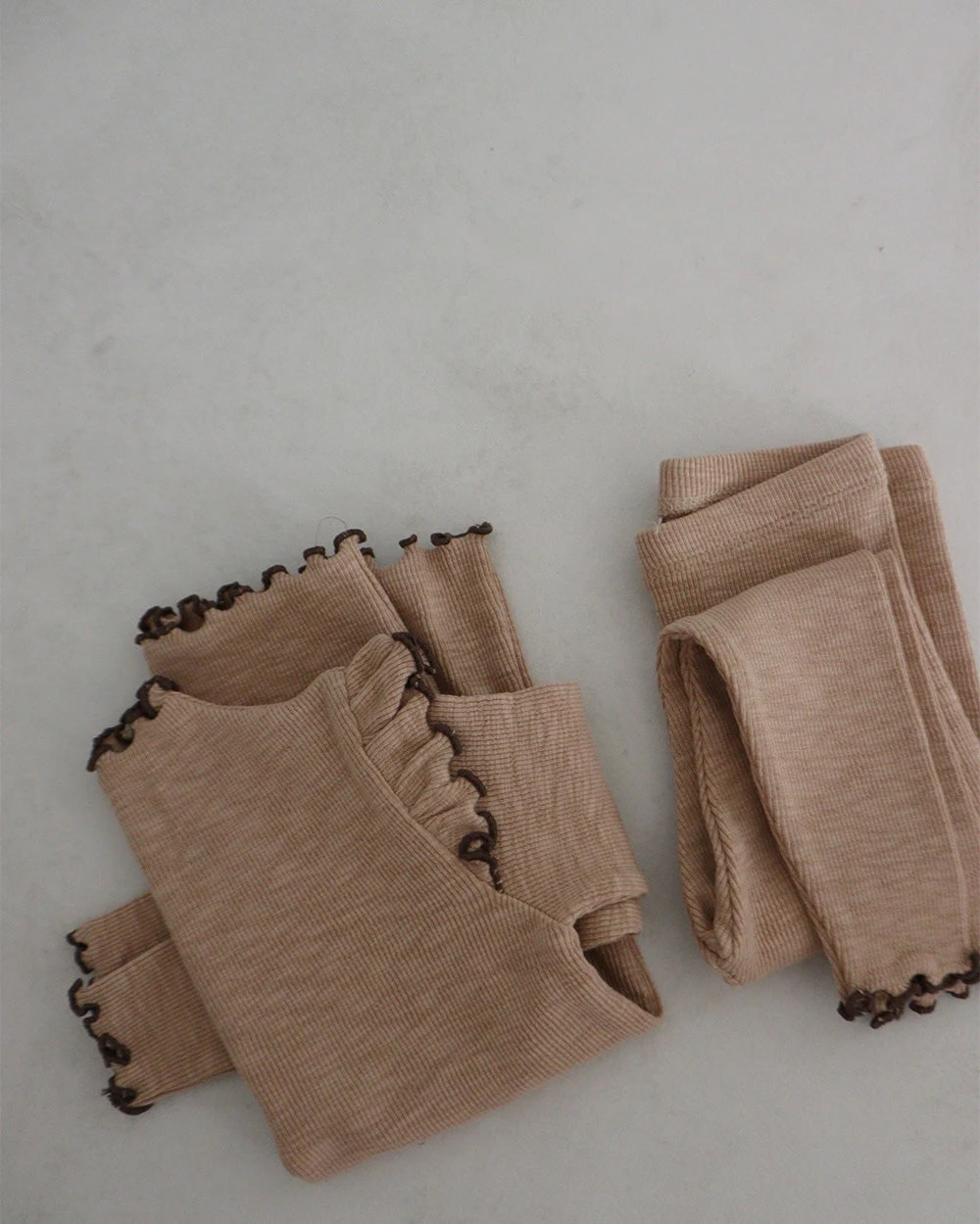 Buttery soft pyjamas featuring ruffle details on the shoulder and lettuce trim edges.