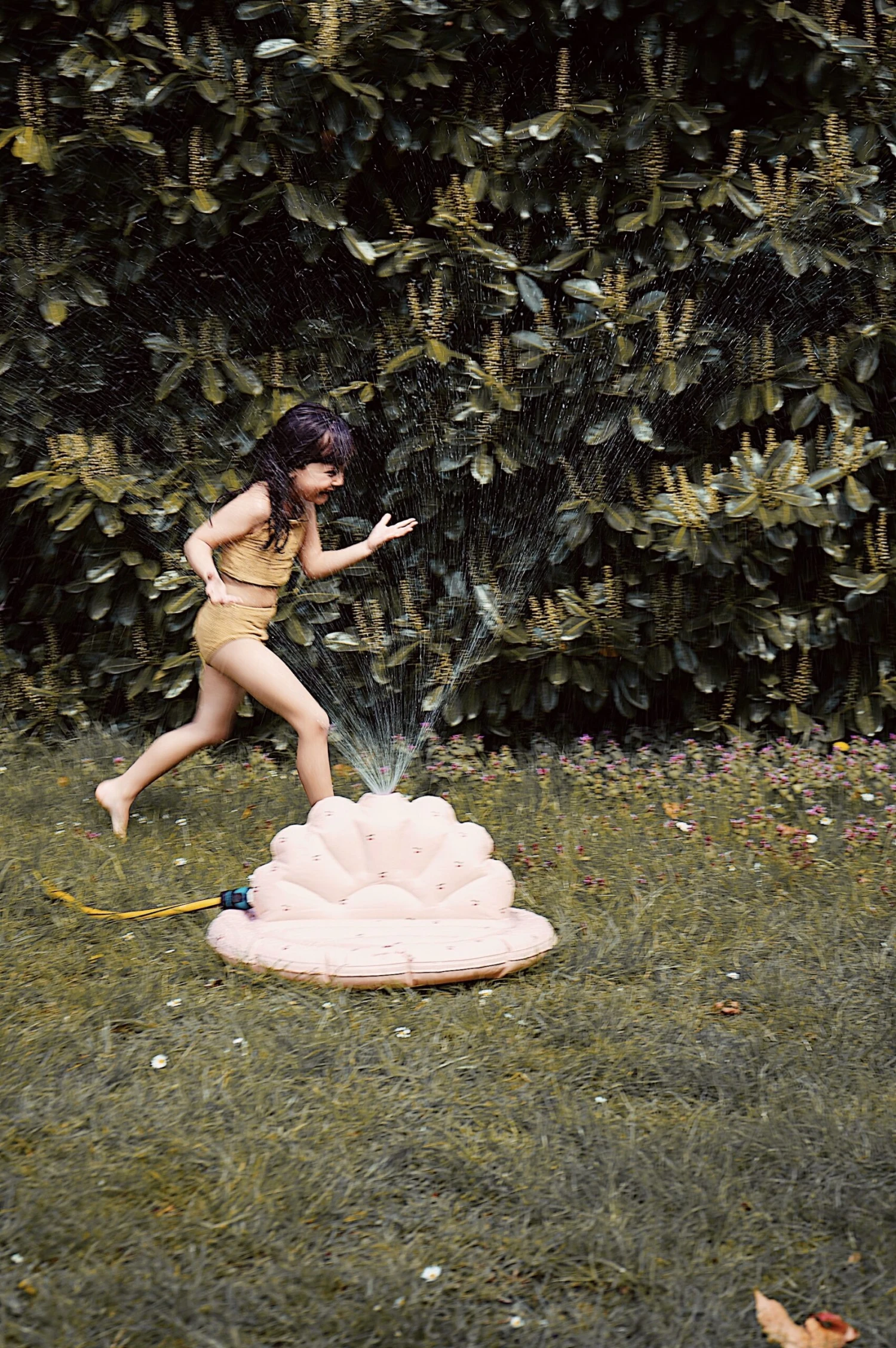Fun inflatable shell sprinkler. Choose between three unique Konges Sløjd prints. Includes hose adaptor, which fits onto most EU domestic hoses.