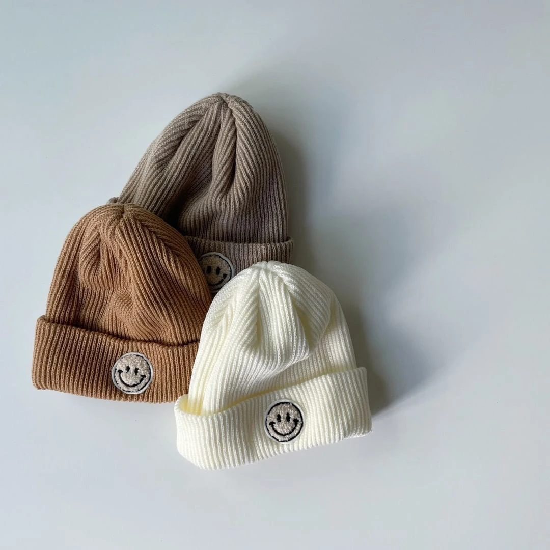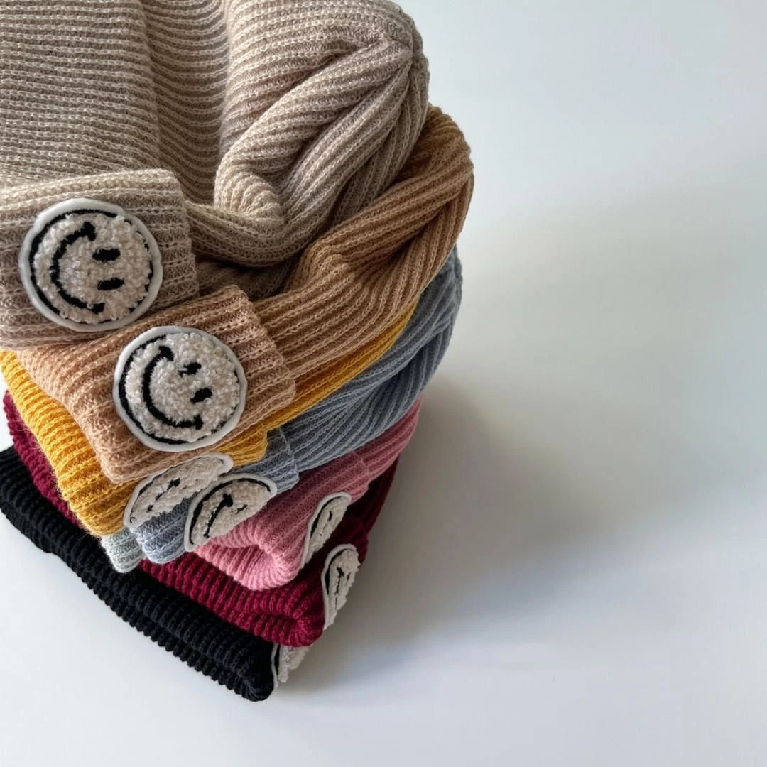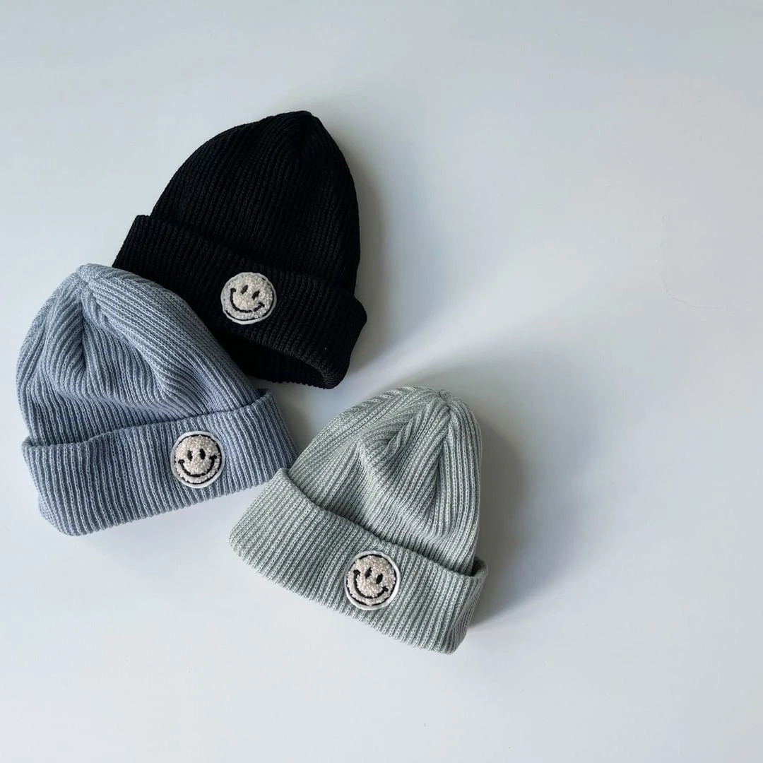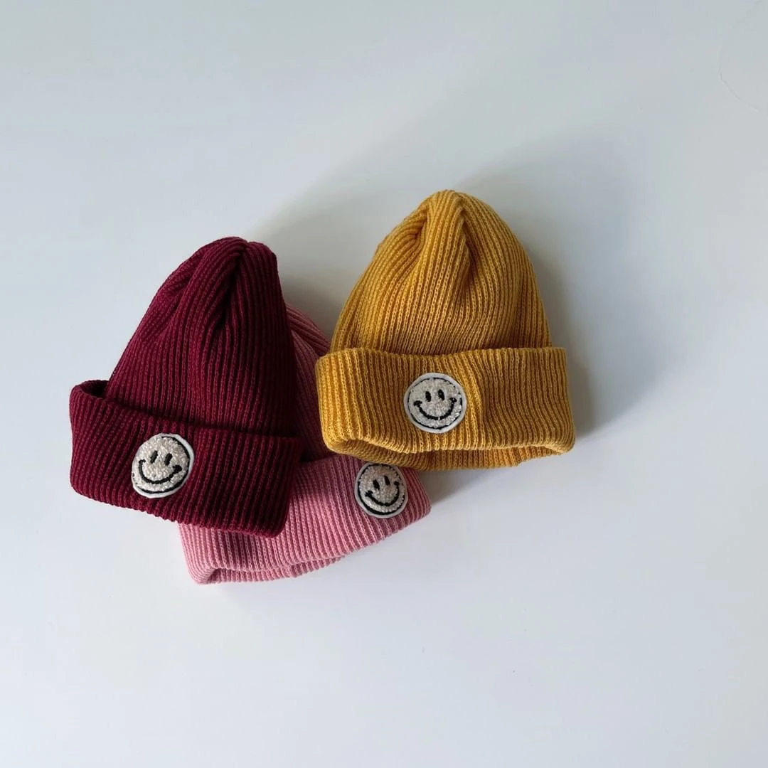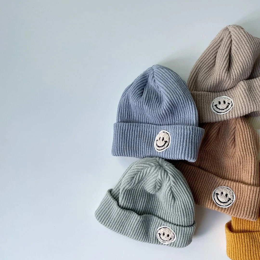 It’s beanie season and we’ve got the cutest fuzzy smiley face patch beanie for your little ones.