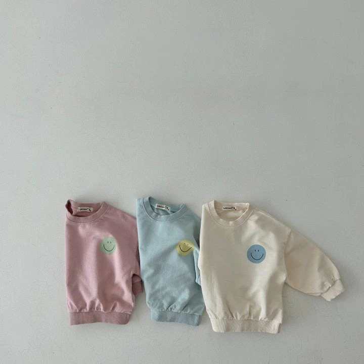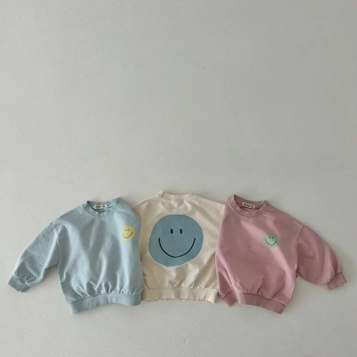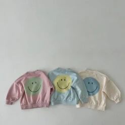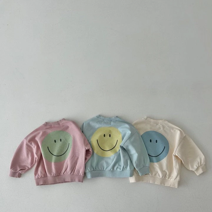 A perfectly oversized happy sweatshirt featuring a smiley face graphic on the front and backside.