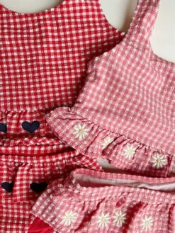 Bikini made in 48 percent recycled polyester, 44 percent polyamide and 8 percent elastane. Designed with frills adorned with small embroideries.