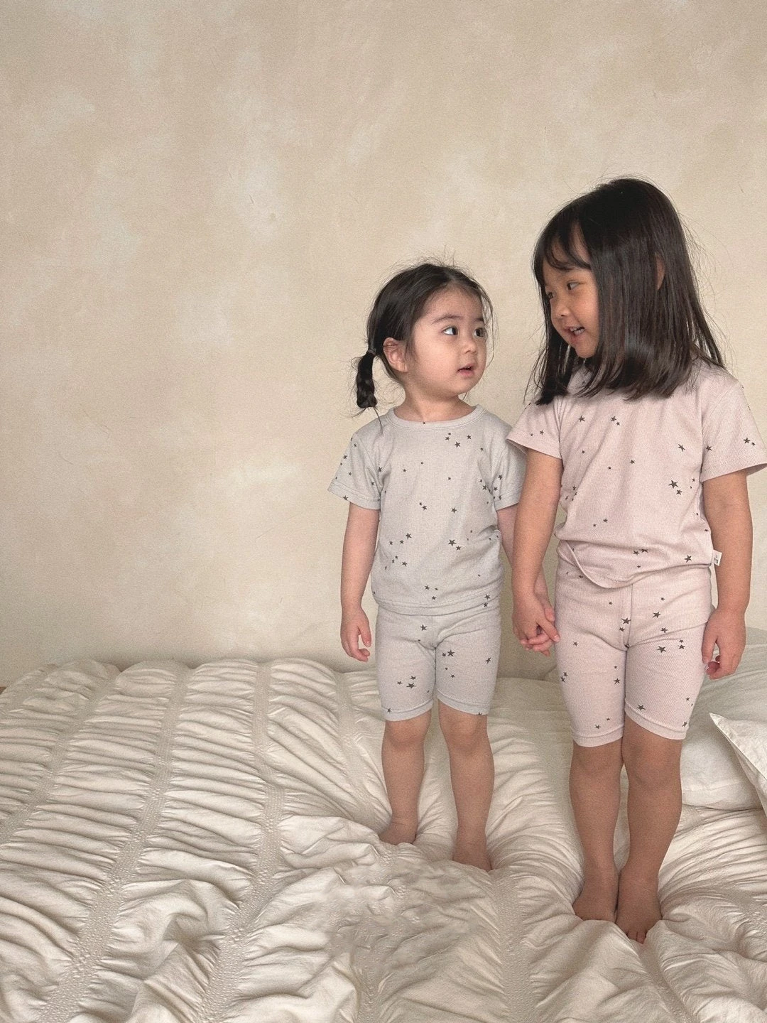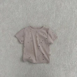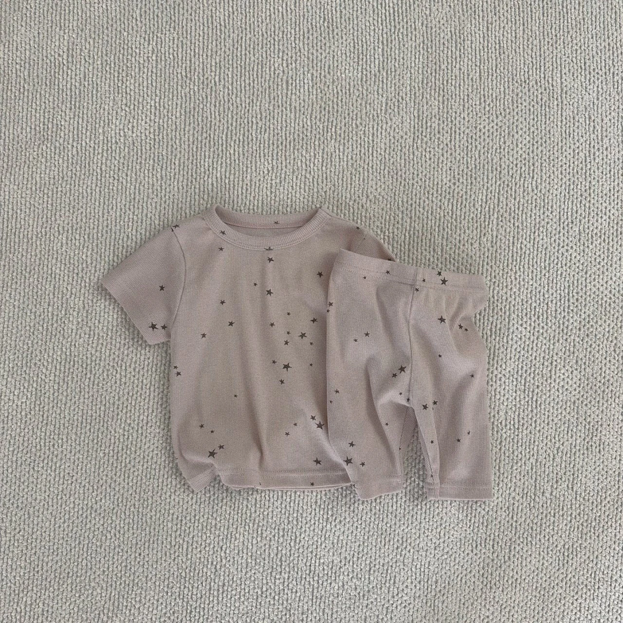 Buttery soft, neutral ribbed short-sleeved top and matching shorts set.