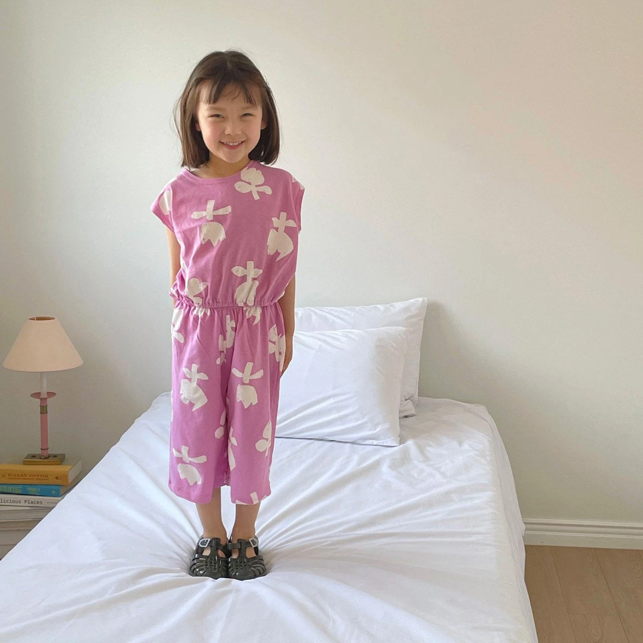 A cap sleeve tee and matching capri length wide legged pants featuring an allover tulip print.