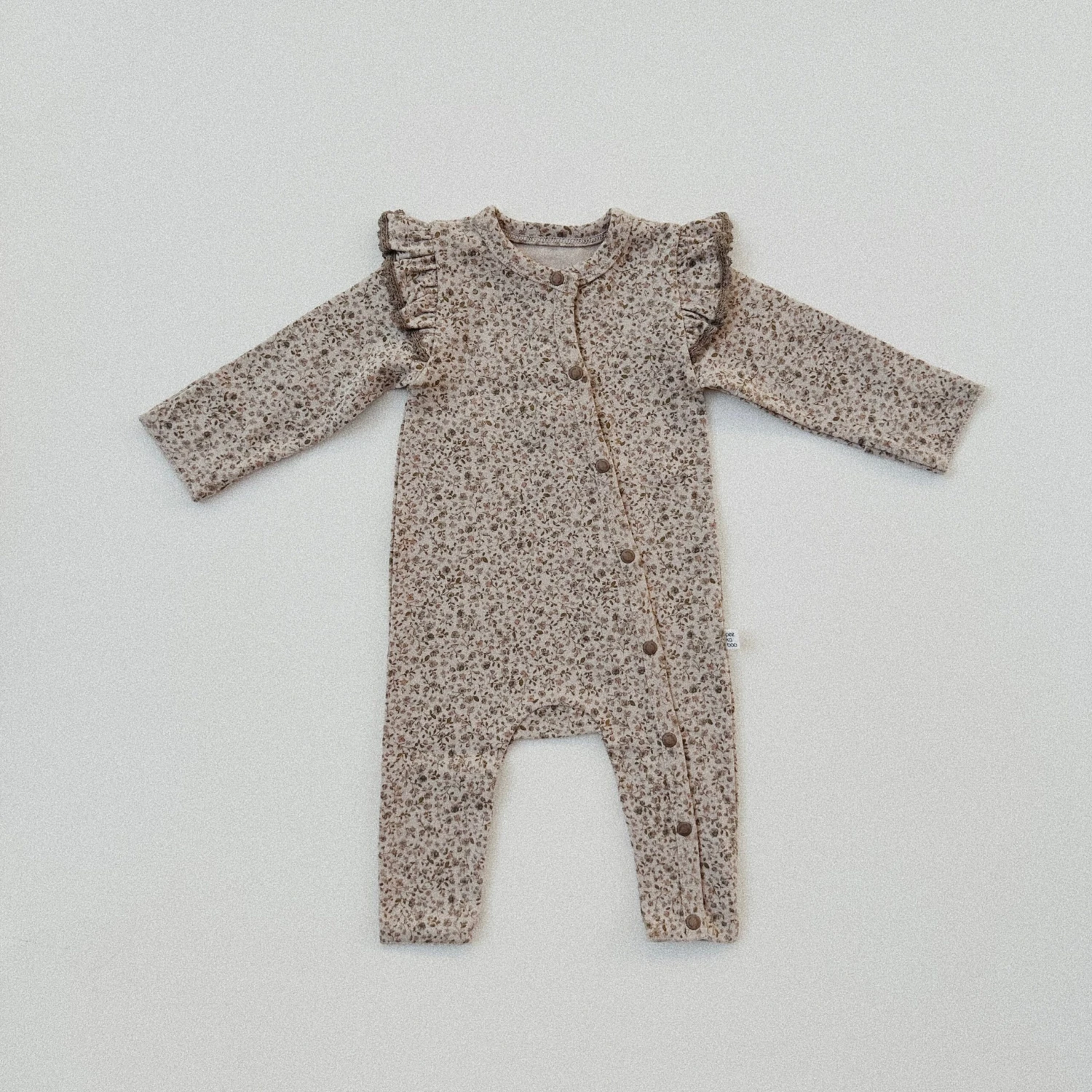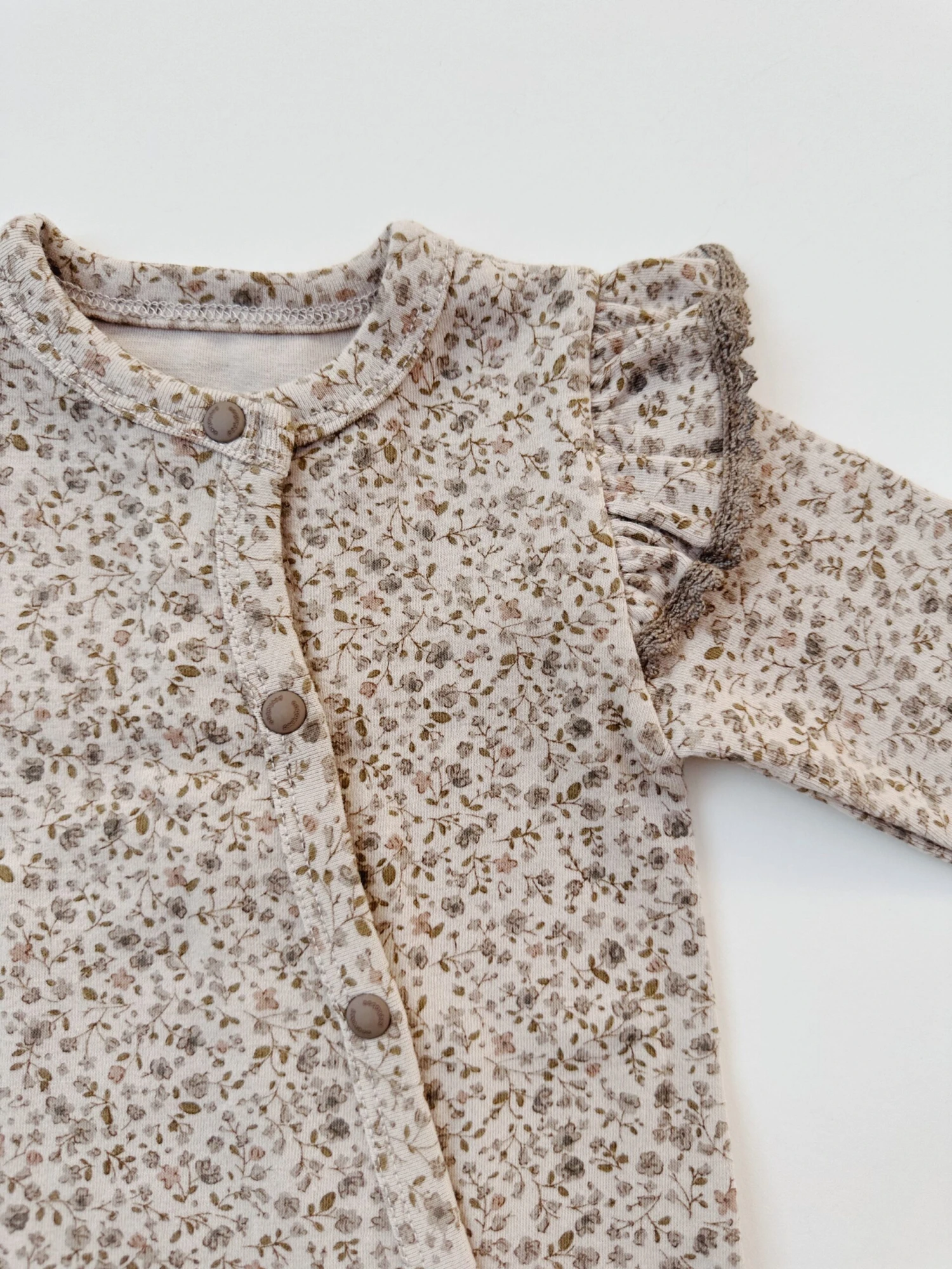 Buttery soft pyjamas featuring a beautiful vintage floral print and pretty lace ruffle details.