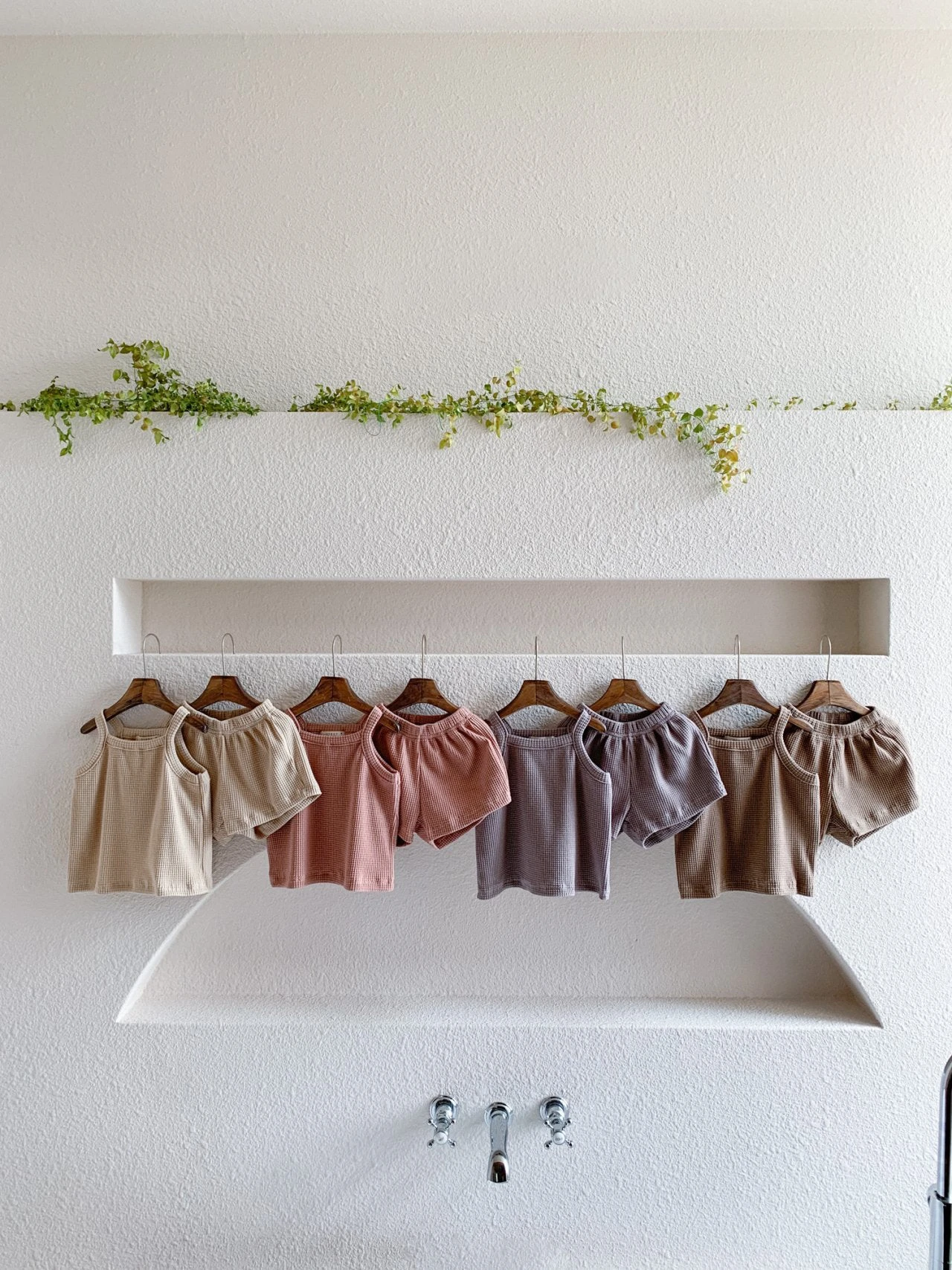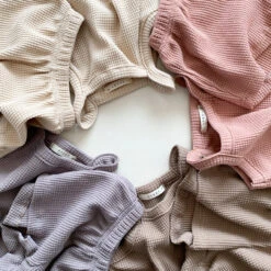 Waffle sleeveless top and matching shorts.