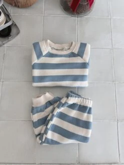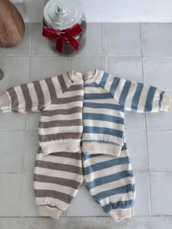 A perfectly oversized striped sweat set featuring brushed fleece on the inside for extra coziness this winter season.