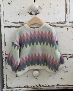 A perfectly oversized knit crewneck featuring an allover multi color zig zag print.